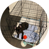 Before you bring your dog home, get a crate. Crates are not cages! Crates are a very positive place for them, filled with treats and blankets and toys and words of praise. When they’re tired, they’ll just wander over to their crate and nap.